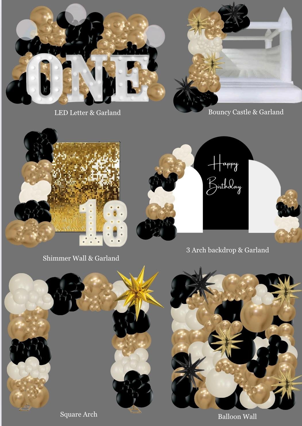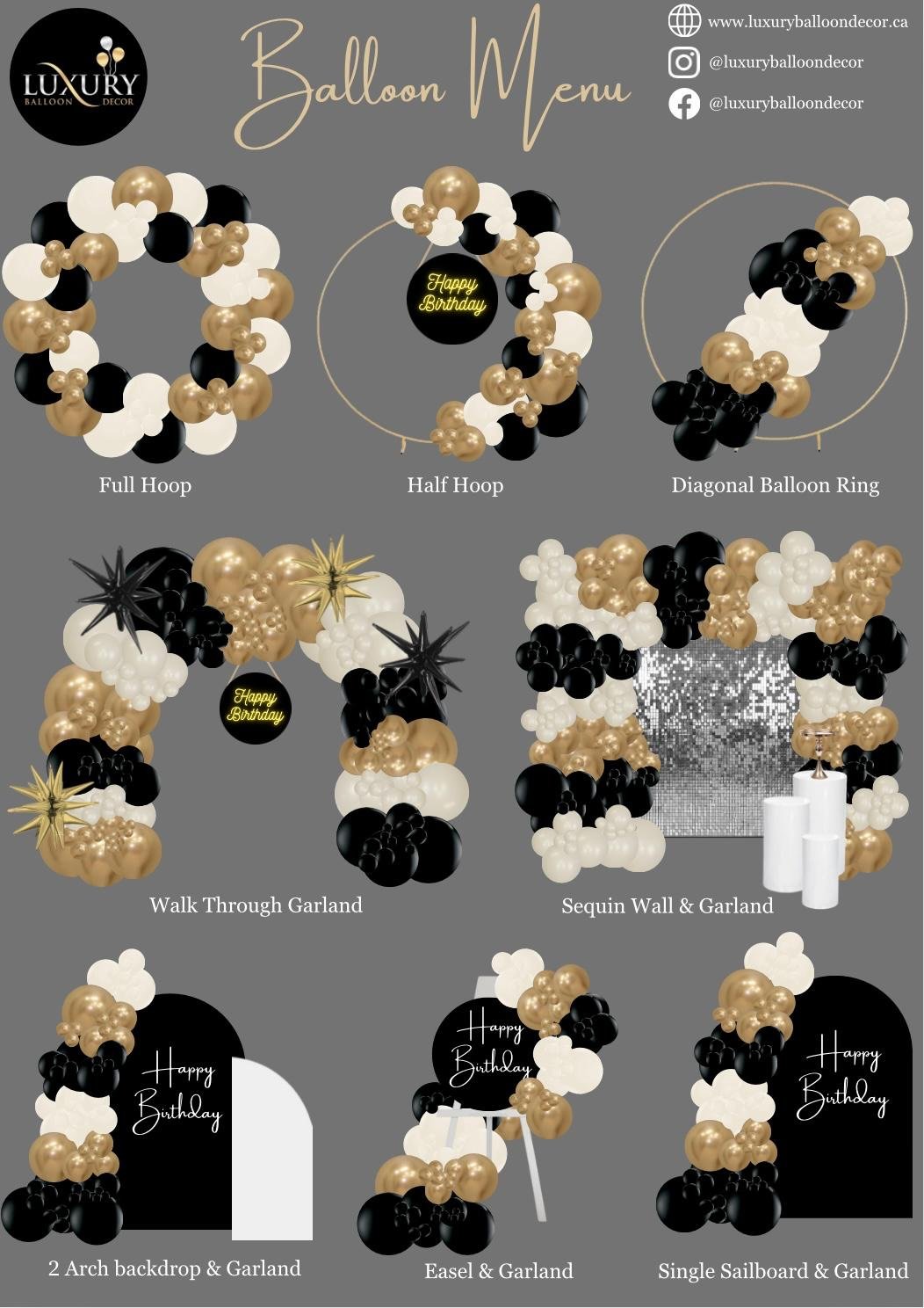 We have numerous balloon styles to accommodate all of your event needs. From Circle arches, Square arches, Walkthrough Arches, Backdrop panels and more….Pick your favourite style and message us for your customized quote. Let us be your partners