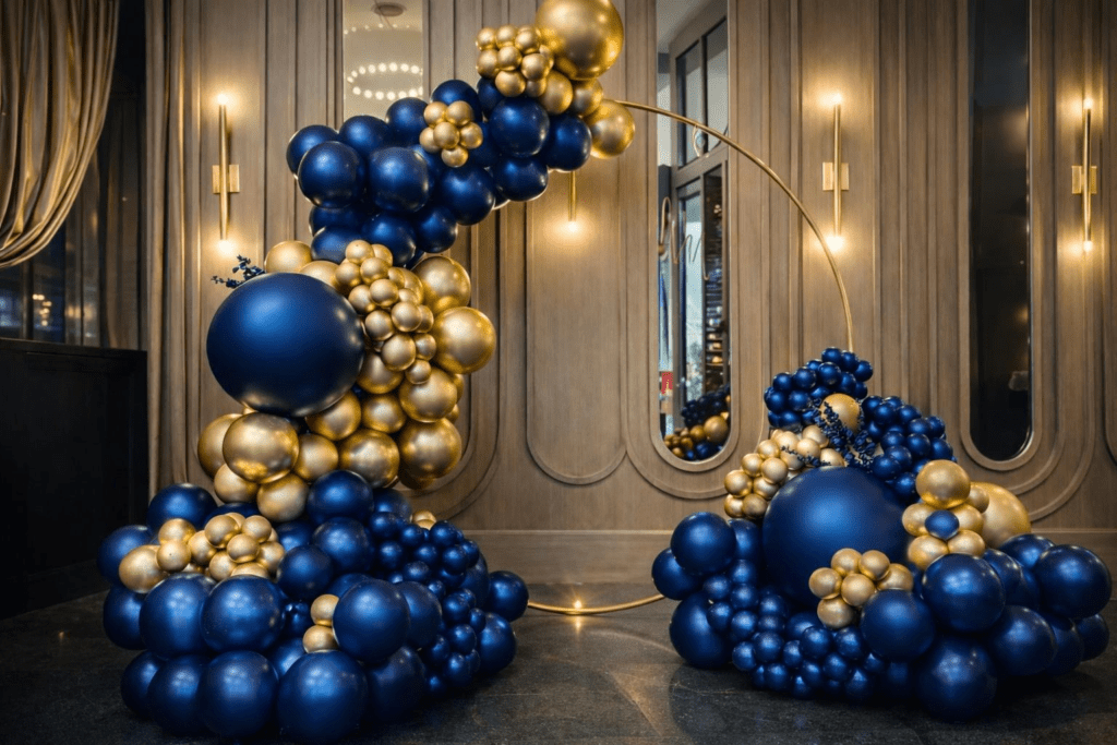 For corporate events, we usually suggest and provide a 7ft balloon tower on which a combination of minimalistic balloon garlands that suit the theme of your company. This combination of balloon towers, according to the theme of your organization, can light up your event and put a lasting impact on the minds of guests as well as your clients.